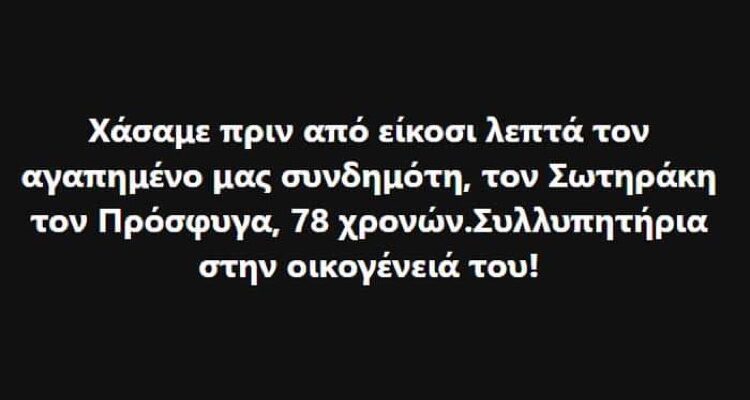 Ανακοίνωση θανάτου Σωτηράκη Πρόσφυγα