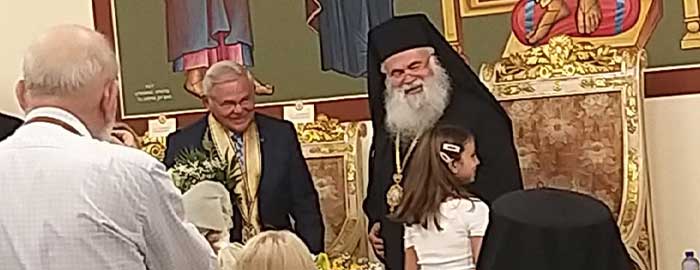 Απόψε, στο Αρχιεπισκοπικό Μέγαρο σε μια σεμνή εκδήλωση ο Αρχ. Γεώργιος τίμησε τον Γερουσιαστή Ρόμπερτ Μενέντεζ με το παράσημο του Αποστόλου Βαρνάβα. Ο κ. Μενέντεζ στην αντιφώνησή του φορτίστηκε συναισθηματικά! Τον ευχαριστούμε για την προσήλωσή του στις Αρχές του Δικαίου. Είναι Άνθρωπος, όπως ονιαε εμφαντικά ο Μακαριώτατος!