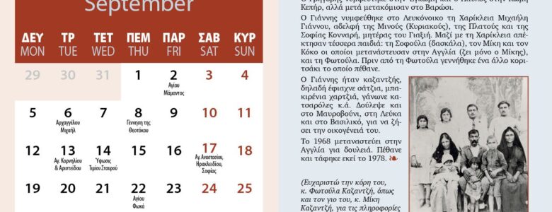 Καλό μήνα, φίλοι και φίλες! Καλό φθινόπωρο! Υγεία, δύναμη και καλή καρδιά! Από το Ημερολόγιο του Δήμου Λευκονοίκου, του αφιερωμένου στους Μικρασιάτες που έζησαν μαζί μας στην κωμόπολή μας.