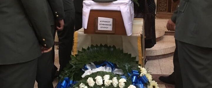 Αποχαιρετήσαμε από τον Ναό Αγίων Πάντων στη Μακεδονίτισσα τον Ήρωα Ανθυπολοχαγό ΠΖ Επιφάνιο Κυριάκου του Σπύρου όπου έπεσε μαχόμενος κατά τη διάρκεια της δεύτερης εισβολής το 1974 και ανευρέθηκε μαζί με άλλους συμπολεμιστές του 281 ΤΠ όπου υπηρετούσε σε ομαδικό τάφο.