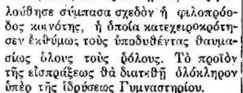 Ανταπόκριση σε εφημεριδα της εποχής αναφέρει πως «σύμπασα η φιλοπρόοδος κοινό της Τρικώμου παρηκολούθησε το διδαχθέντα από σκηνηλς πατριωτικών Δράμα ΕΣΜΕ υπό λίαν φιλοτίμων ερασιτεχνών». Πρόκειται για το θεατρικό έργο του Σπύρου Περεσιάδη (συγγραφέα της Γκόλφως) που αναφέρεται στον έρωτα του Ελληνοπούλου Δρόσου και της Τουρκοπούλας Εσμέ σε ένα χωριό των Καλαβρύτων το 1821 λόγο… Read more »