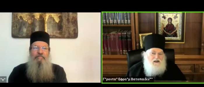 Εόρτιες ευχές του Γέροντος Εφραίμ, Καθηγουμένου της Ιεράς Μεγίστης Μονής Βατοπαιδίου επί τη εορτή της ενανθρωπήσεως του Κυρίου ημών Ιησού Χριστού κατά την διάρκεια της Διαδικτυακής Συνάντησης που είχε με Νέους και Παιδιά την Πέμπτη 23 Δεκεμβρίου 2021. Ο Γέροντας Εφραίμ εύχεται η παρουσία του Χριστού να είναι έντονη στην καρδιά των ανθρώπων και να… Read more »