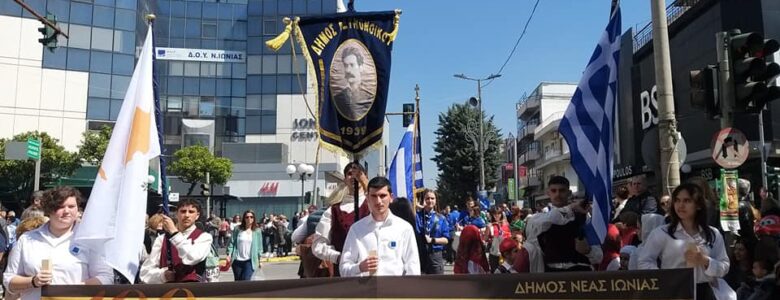 Μαθητές του Δήμου Λευκονοίκου με τα λάβαρά μας στην παρέλαση στη Νέα Ιωνία