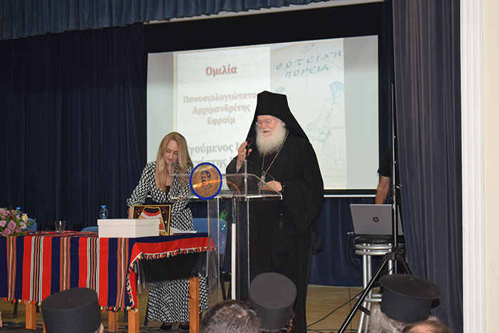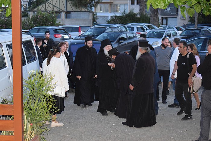 Έρχεται ο Γέροντας Εφραίμ και τον καλωσορίζουμε με τα καπνιστομέρεχά μας! Μαζί μας ο πατήρ Πανάρετος, ο Αρχιμανδρίτης μας, ο Αρχηγός της Εθνικής Φρουράς με τη σύζυγό του, ο Υπαρχηγός της Αστυνομίας, κ. Δημήτρης Δημητρίου, ο Διοικητής της ΕΛ.ΔΥ.Κ., τα αδέλφια Σωτήρης και Χρίστος Πίτας, η μουσικός μας, κ. Μάρω Μήτσα, η Δρ Ειρήνη Ροδοσθένους, ο Δρ Νίκος Ροδοσθένους, οι αδελφές του Γέροντά μας, τα ανίψια του, οι γαμπροί του, ο κ. Μιχάλης Ανδρέου και η εξαίρετη κόρη του κ. Κατερίνα Ανδρέου, ιδιοκτήτες των εστιατορίων Mcdonald’s, κ.ά.