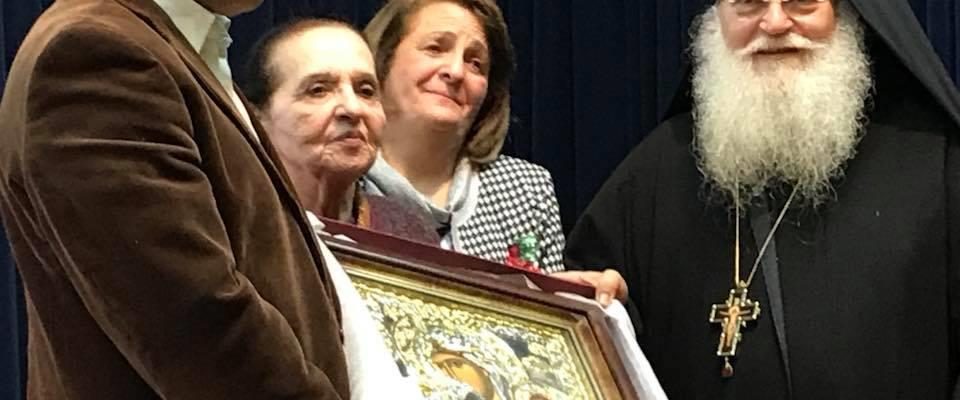 Ήταν μια μεγαλειώδης εκδήλωση σε μια κατάμεστη αίθουσα στην οποία, μετά από πνευματική ομιλία, ο Γέροντας Εφραίμ χάρισε στους συγγενείς των τριών γυμνασιαρχών και στους καθηγητές/τριες μια μεγάλη ασημένια εικόνα της Παναγίας Παραμυθίας.