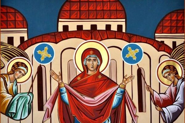Τῇ Θεοτόκῳ οἱ Πιστοὶ νῦν προσπελάσωμεν, καὶ τὸ μαφόριον αὐτῆς κατασπασώμεθα, ἀναμέλποντες ἐφύμνια κατὰ χρέος. Σκέπη πέλει γάρ, πιστοὺς σκέπουσα ἅπαντας, καὶ φρουροῦσα ἐκ παντοίων περιστάσεων, τοὺς κραυγάζοντας, χαῖρε Σκέπη ὁλόφωτε.