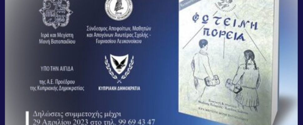 Η Ιερά Μεγίστη Μονή Βατοπαιδίου ο Πανοσιολογιώτατος Αρχιμανδρίτης Εφραίμ, η Δήμαρχος Λευκονοίκου, κ. Ζήνα Λυσάνδρου-Παναγίδη και ο Σύνδεσμος Αποφοίτων. Μαθητών και Απογόνων Ανωτέρας Σχολής – Γυμνασίου Λευκονοίκου παρουσιάζουν την έκδοση της Ιεράς Μεγίστης Μονής Βατοπαιδίου «ΦΩΤΕΙΝΗ ΠΟΡΕΙΑ»