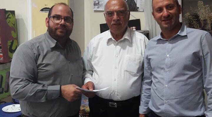 Ο Πρόεδρος του Προσφυγικού Σωματείου μας στη Λάρνακα κ. Νίκος Αθανασίου μαζί με τον Γραμματέα κ. Κυριάκο Κωνσταντίνου παραδίδουν στον σκηνοθέτη κ. Αντρέα Χρίστου της θεατρικής ομάδας “Δημιουργείν” επιταγή για τις ανάγκες τους. Η θεατρική ομάδα μάς παρουσίασε το θεατρικό δρώμενο ” Ρωμιοσύνη” αφιλοκερδώς, και γι’ αυτό τους ευγνωμονούμε.