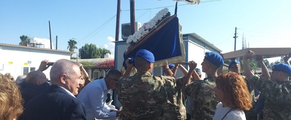 Παρόντες και ο νέος Αρχηγός της Εθνικής Φρουράς, ο Υπαρχηγός, επίσημοι και πλήθος κόσμου που πέρασαν όλοι και όλες κάτω από την εικόνα της Παντάνασσας με δέος και προσευχή.