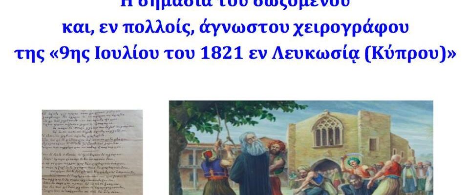 Θέμα: «Η σημασία του σωζόμενου και, εν πολλοίς, άγνωστου χειρογράφου της “9ης Ιουλίου του 1821 εν Λευκωσίᾳ (Κύπρου)”»