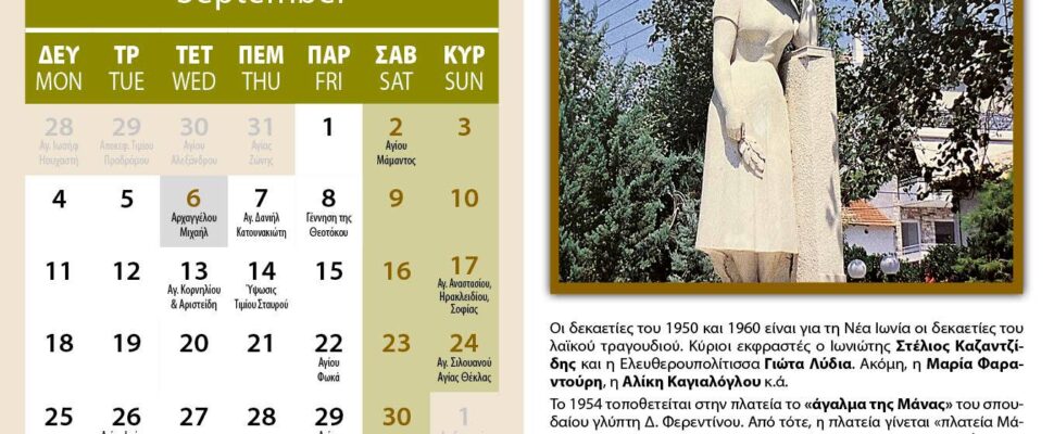 Από το Ημερολόγιο του Δήμου Λευκονοίκου, το αφιερωμένο στη Νέα Ιωνία, τον αδελφό Δήμο!