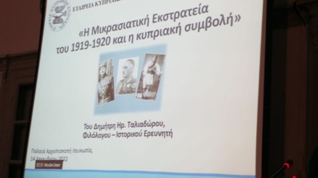Μνήμες Μικρασίας στην Παλαιά Αρχιεπισκοπή. Τίτλος της εκδήλωσης: ΜΙΚΡΑΣΙΑΣ ΕΝΘΥΜΗΜΑΤΑ . ΜΙΚΡΑΣΙΑΤΕΣ ΠΡΟΣΦΥΓΕΣ ΣΤΗΝ ΚΥΠΡΟ. Μία εξαιρετική εκδήλωση, με έκθεση κειμηλίων Μικρασιατών αλλά και από τους Κύπριους που πολέμησαν στη Μικρασία. Ψυχή της εκδήλωσης οι φίλτατοι Δρ Χαράλαμπος Χοτζάκογλου και Δρ Ιωάννης Ηλιάδης, της Εταιρείας Κυπριακών Σπουδών, οι οποίοι σε συνεργασία με την Επιτροπή Κατεχόμενων Δήμων, την Ένωση Εκτοπισμένων Κοινοτήτων Λευκωσίας και τον Σύνδεσμο Μικρασιατών Κύπρου, κατάφεραν να μας συγκλονίσουν. Χαιρετισμό απηύθυναν οι: Αννίτα Δημητρίου, Πρόεδρος της Βουλής, ο Πρέσβυς της Ελλάδας στην Κύπρο, ο Δρ Πέτρος Καρεκλάς, ο Δρ Λευτέρης Αντωνίου και η κ. Αντωνία Προδρόμου.