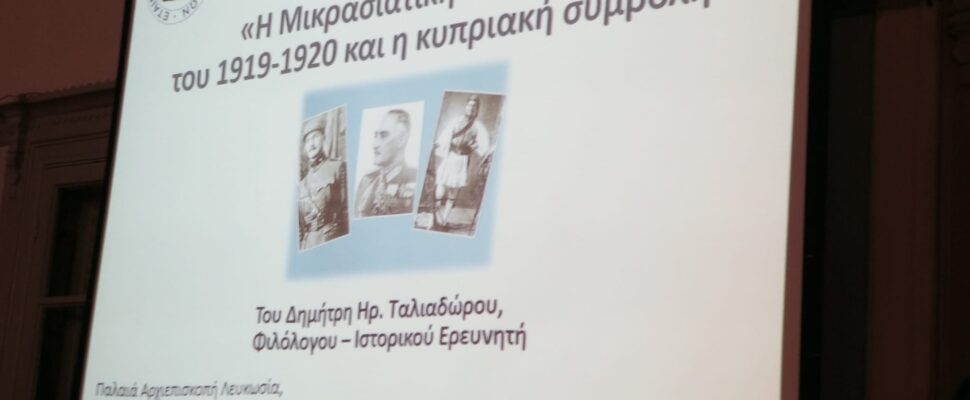 Ο κ. Δημήτρης Ταλιαδώρος, λυκειάρχης, ανέπτυξε το θέμα: “Η Μικρασιατική εκστρατεία του 1919-1922 και η κυπριακή συμβολή”. Στη συνέχεια, έγινε ΤΕΛΕΤΗ ΑΠΟΔΟΣΗΣ ΤΙΜΗΣ ΣΤΟΥΣ ΕΥΚΛΕΩΣ ΑΓΩΝΙΣΑΜΕΝΟΥΣ”.