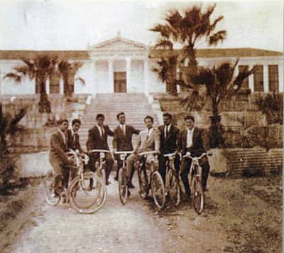 Νεαροί μαθητές έξω από την Καμίντζειο Ανωτέρα Σχολή Λευκονοίκου στα τέλη της δεκαετίας του 1950.