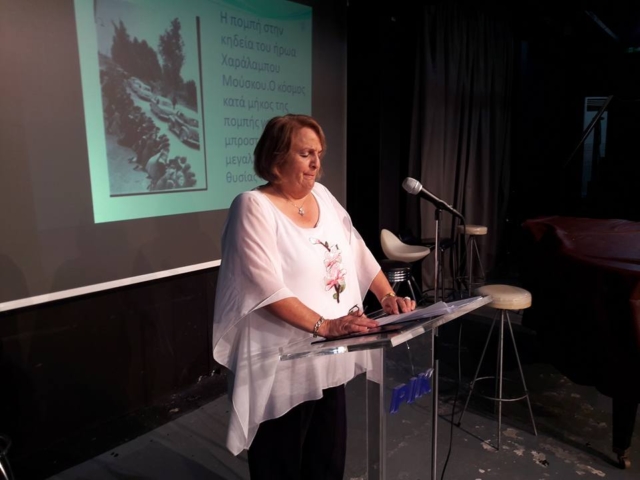 Απόψε παρουσίασα ένα εξαίρετο θεατρικό έργο της Τούλας Κακουλλή για τον ήρωα Χαράλαμπο Μούσκο με τίτλο ” Ψηλά στο Μερσινάκι”.Κατάμεστο το Θεατράκι του ΡΙΚ. Σε ευχαριστώ, αγαπημένη μου Τούλα για την τιμή που μου έκανες.