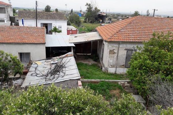 Τα σπίτια μας στο Λευκόνοικο από το ανώι της γειτόνισσάς μου, της θείας Ζηνοβίας του Νίκου του Χοίρα, πνιγμένα στο πράσινο της αυλής που έρχεται σε αντίθεση με το κόκκινο των κεραμιδιών.